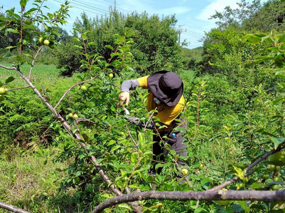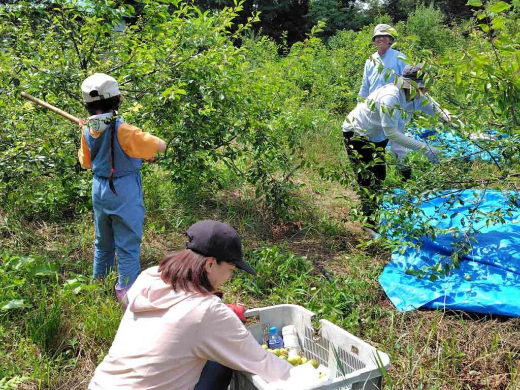 今回は季節仕事として、ちょうど収穫の時期を迎えた梅の実を丁寧に摘み取り、一部はジャムや梅ドリンクに加工。季節の恵みを、味わいながら楽しみました。