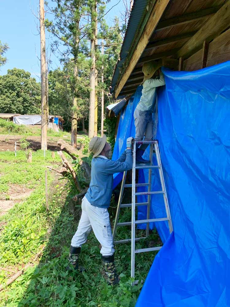 また、傷みが目立ち始めていた堆肥舎には、屋根と壁にブルーシートをかけるなどの補修を施しました。