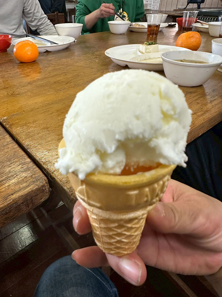 いつもの美味しい食事に加えて、今回はケーキや農場の牛乳で作ったアイスクリームもいただきました。